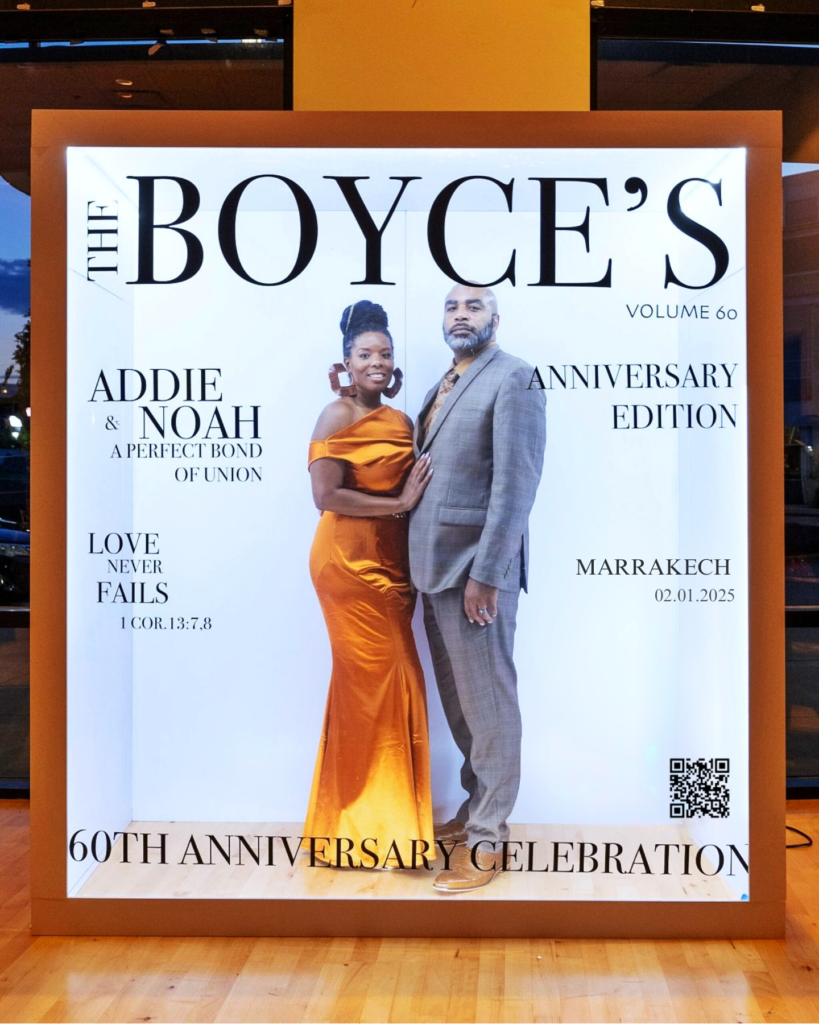 Ajoutez votre titre iciFaites de vos invités les stars d’un soir grâce à un magazine photobooth unique qui leur offre un souvenir personnalisé reflétant parfaitement votre image ! Mettez en avant vos invités, vos produits et votre entreprise tout en communiquant avec du contenu de qualité adapté aux réseaux sociaux grâce à notre animation !